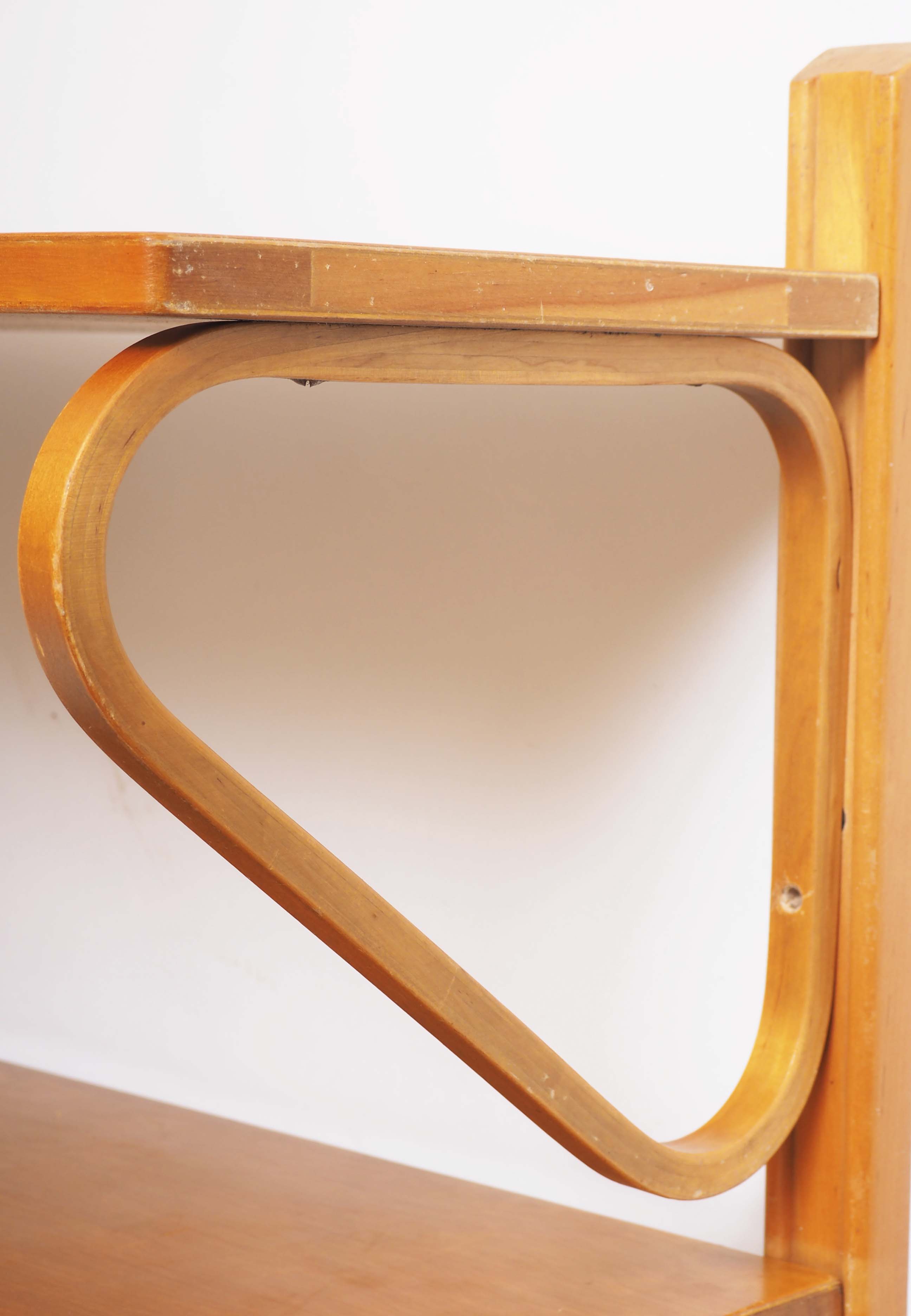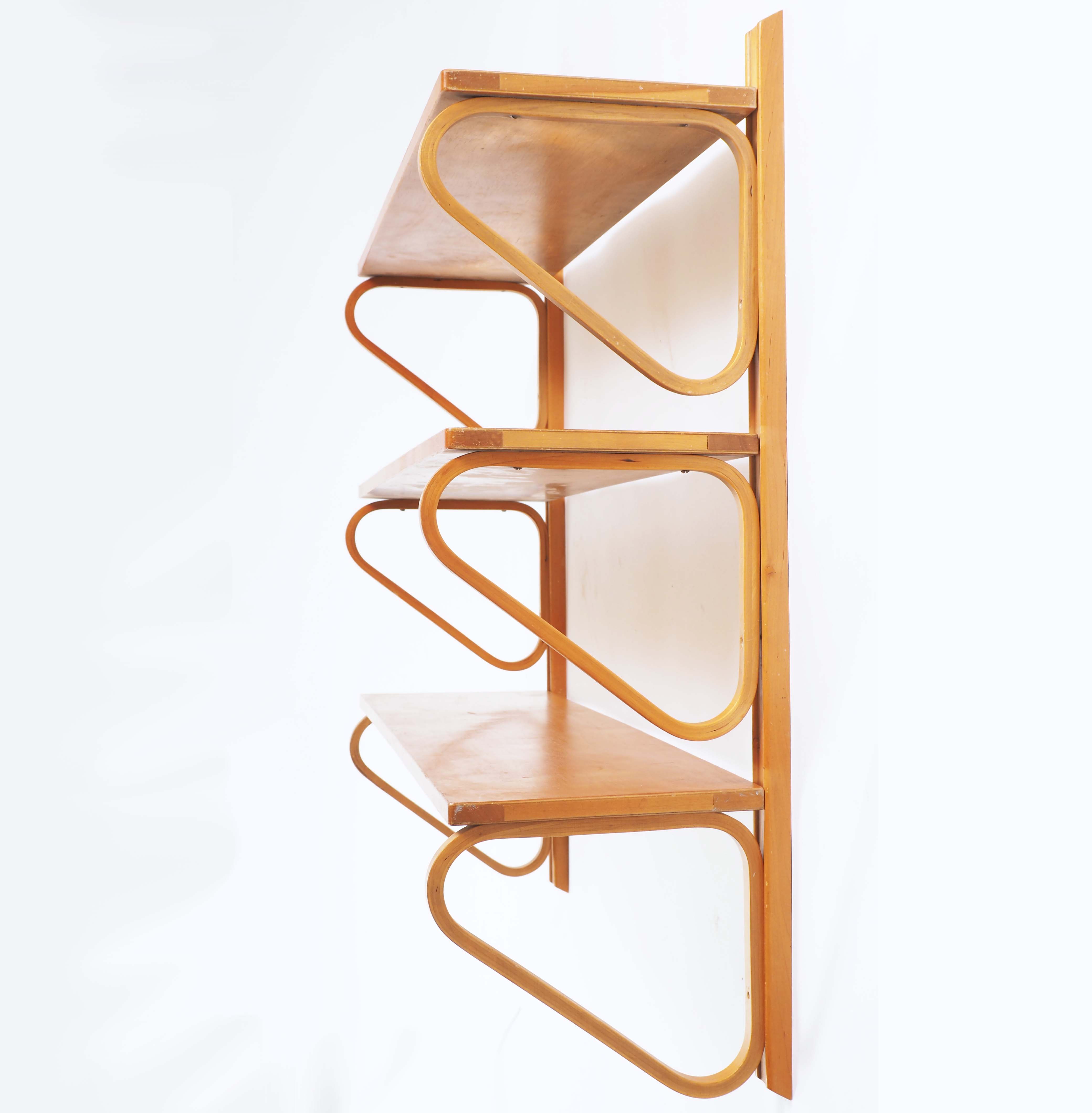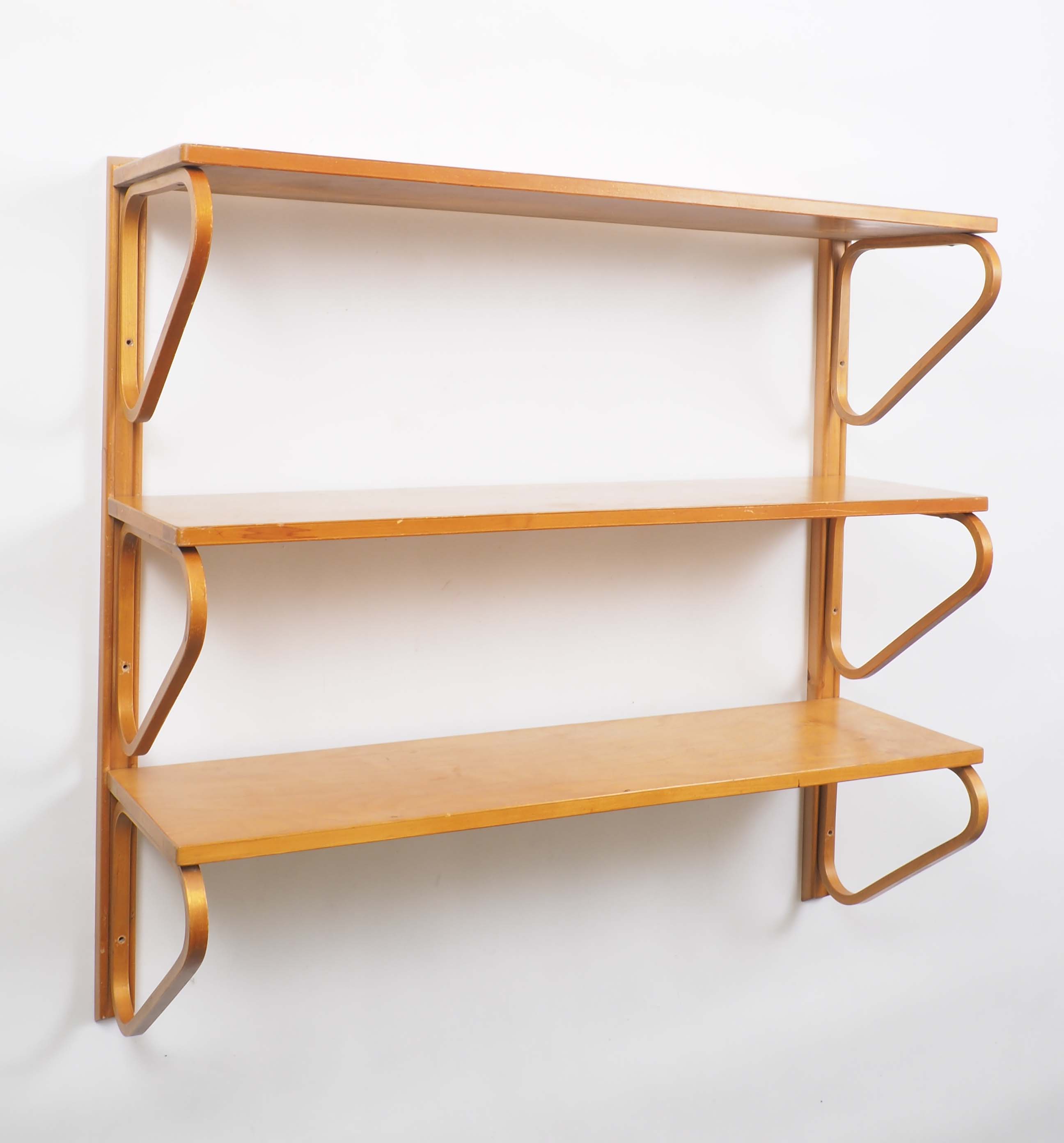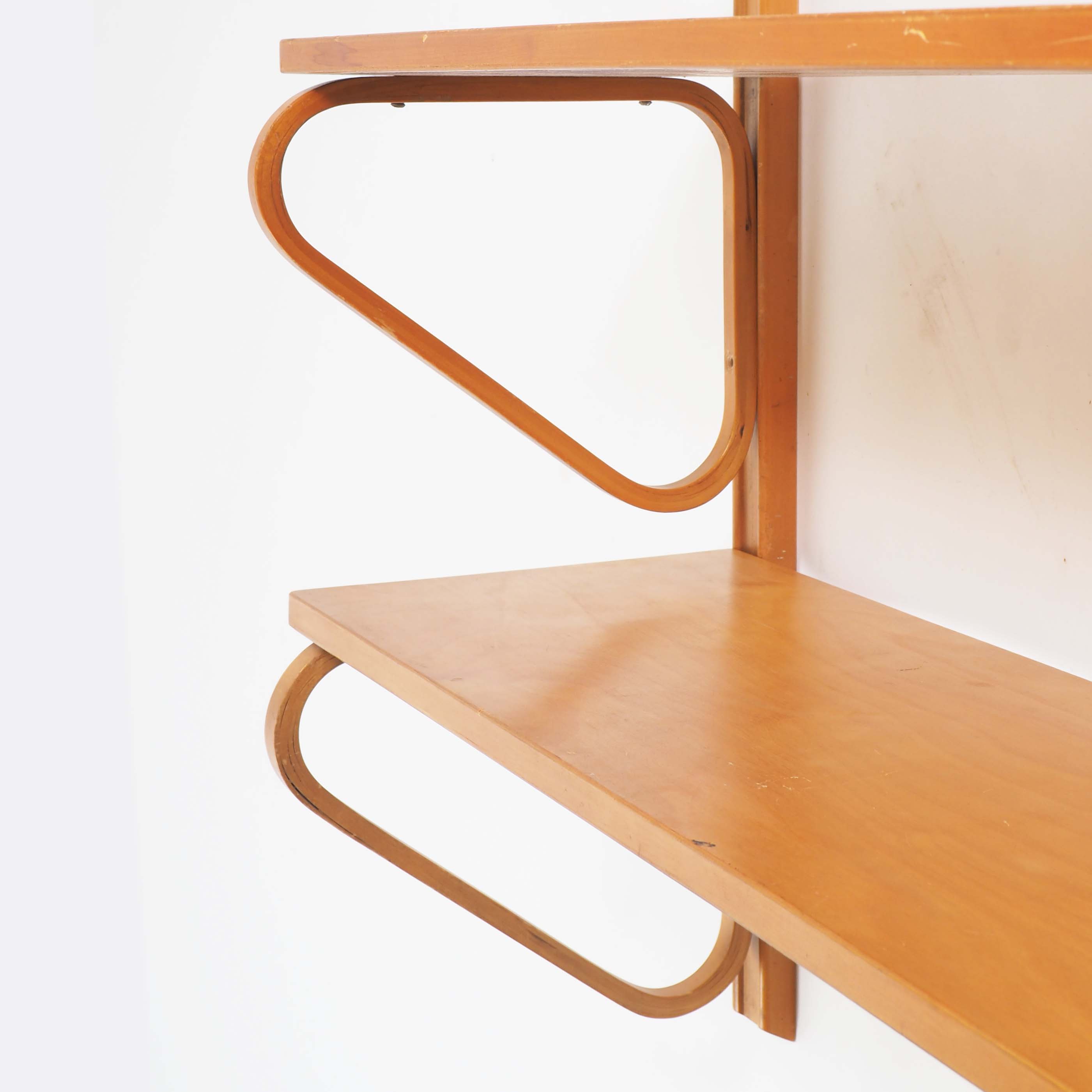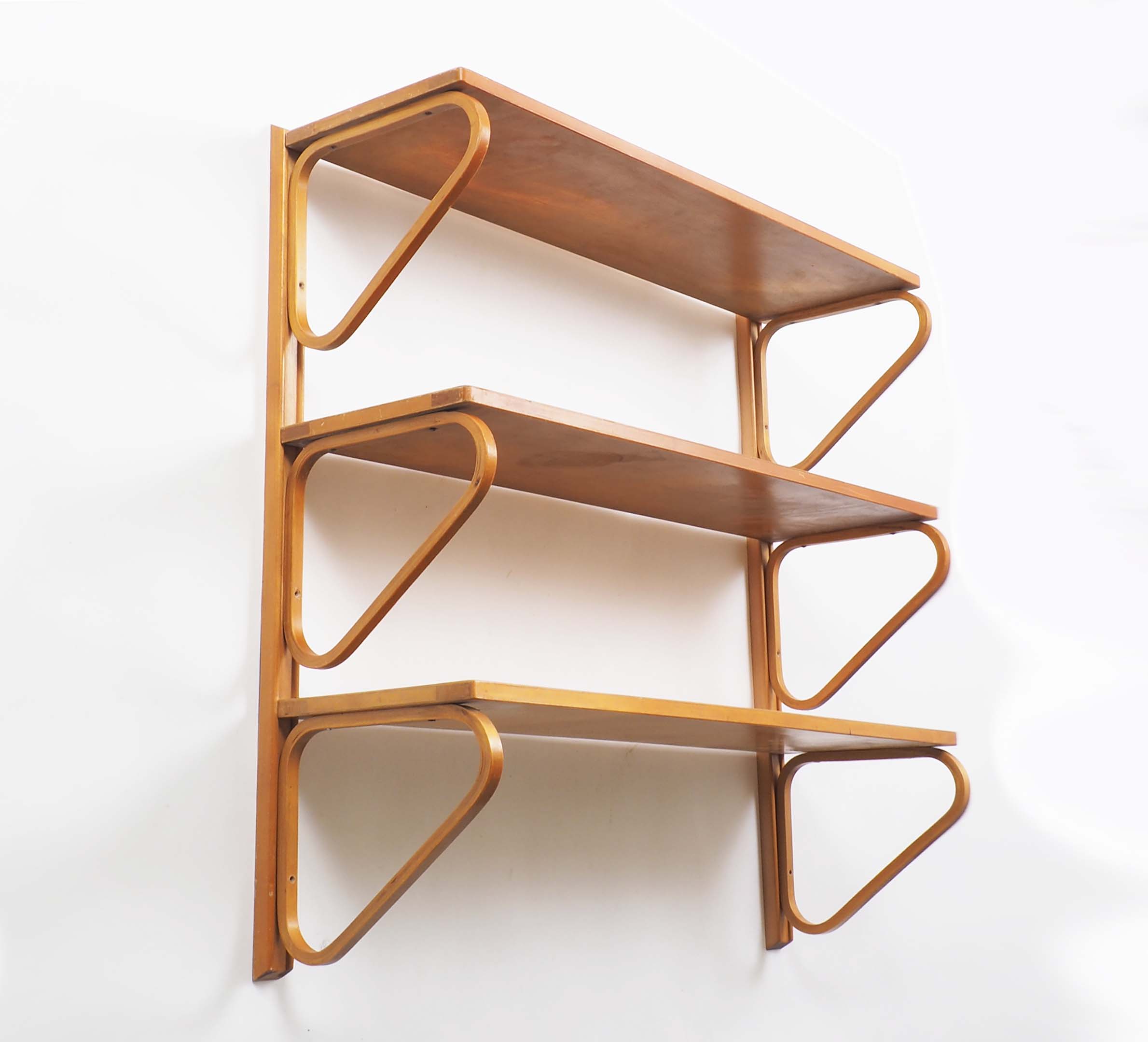 Three Alvar Aalto Shelves with wall-mounting details in birch by Artek Sweden. During the period of 1946-1956, Artek produced Aaltos furniture in Hedemora, Sweden.