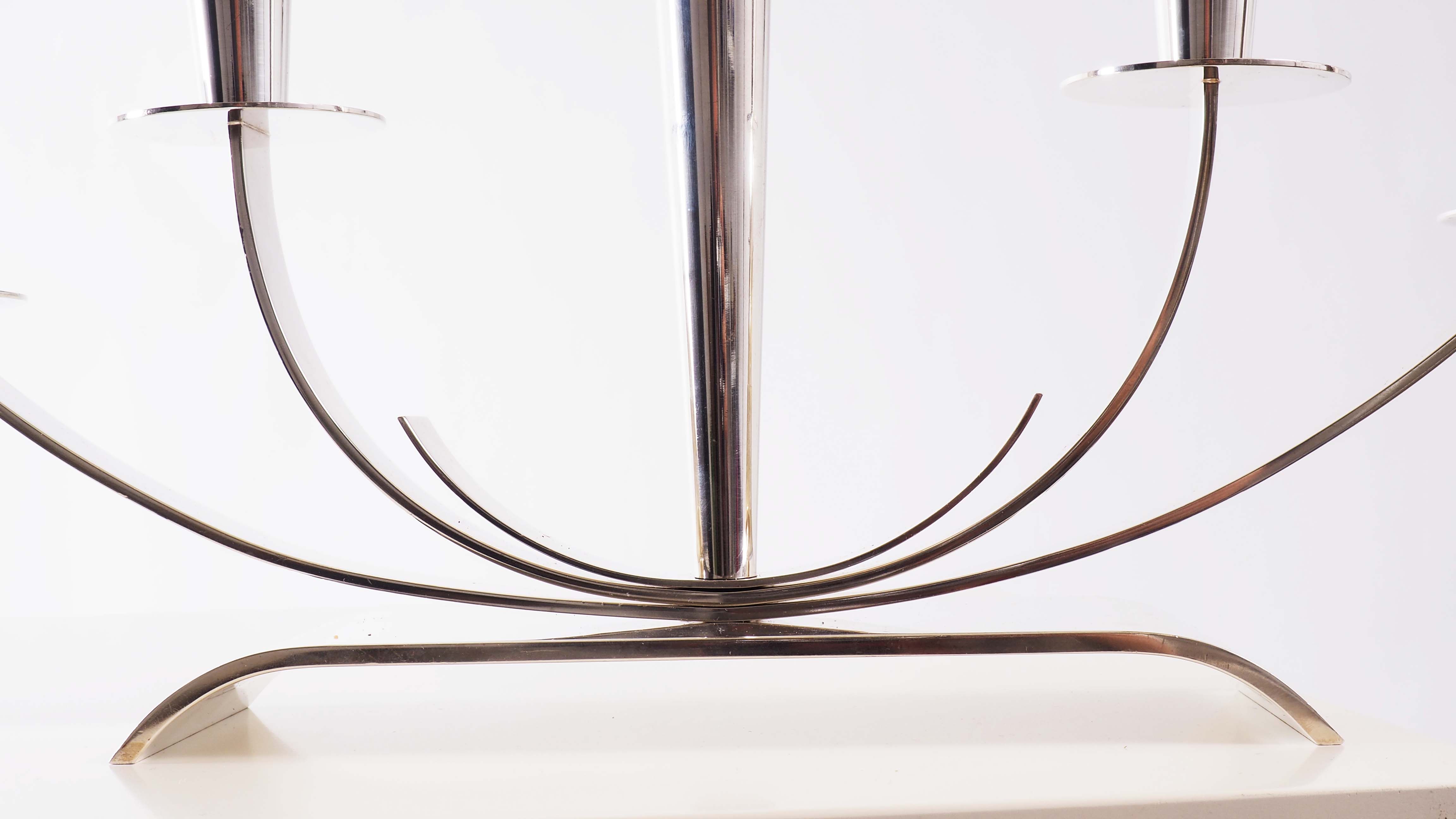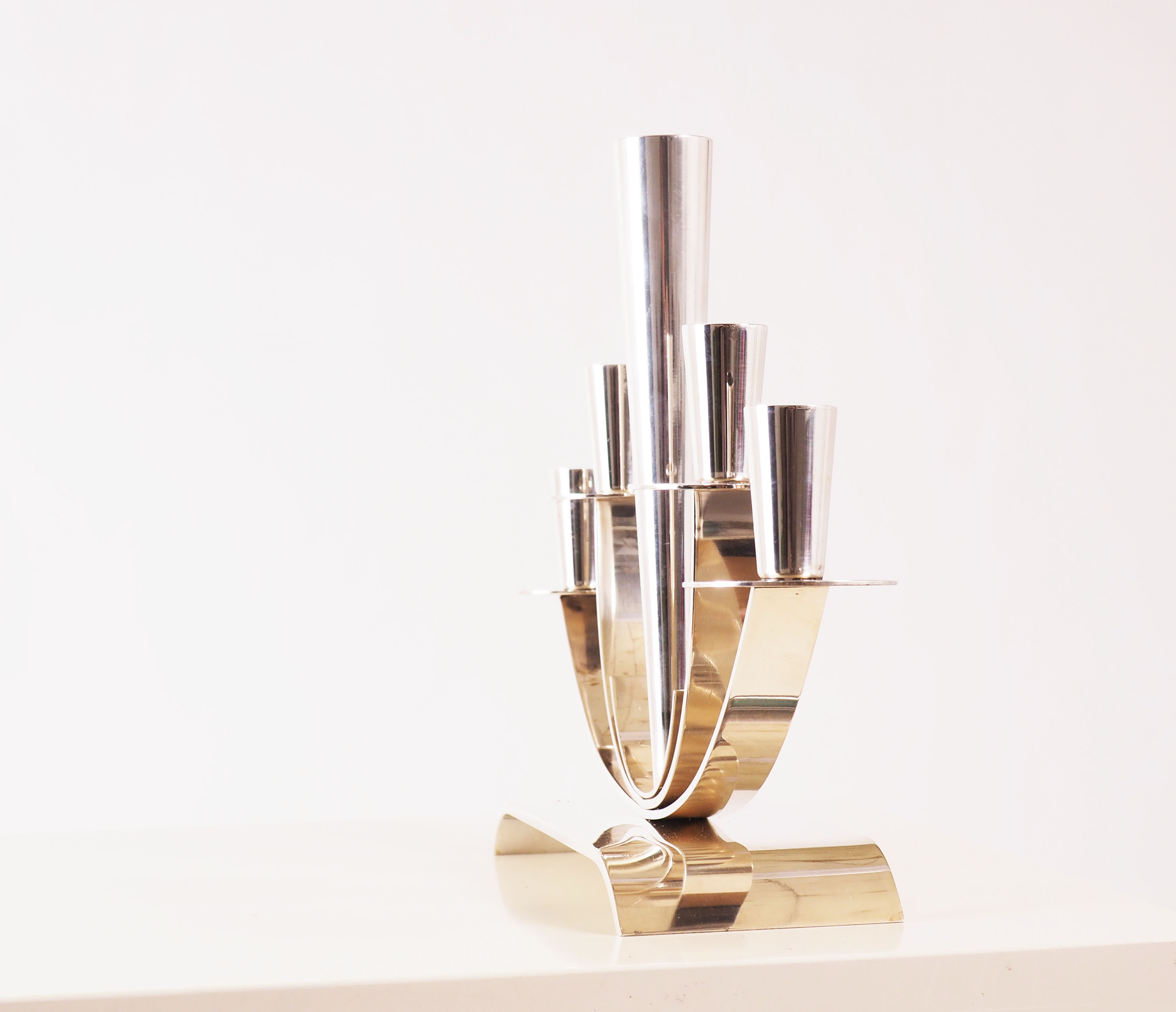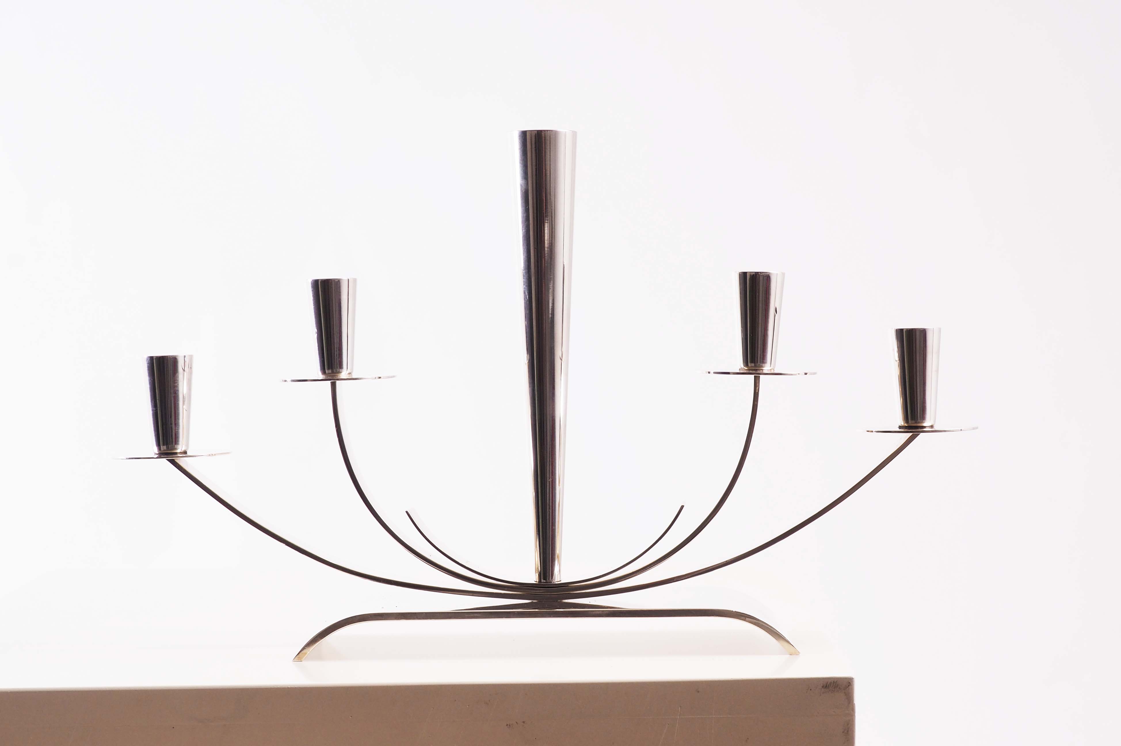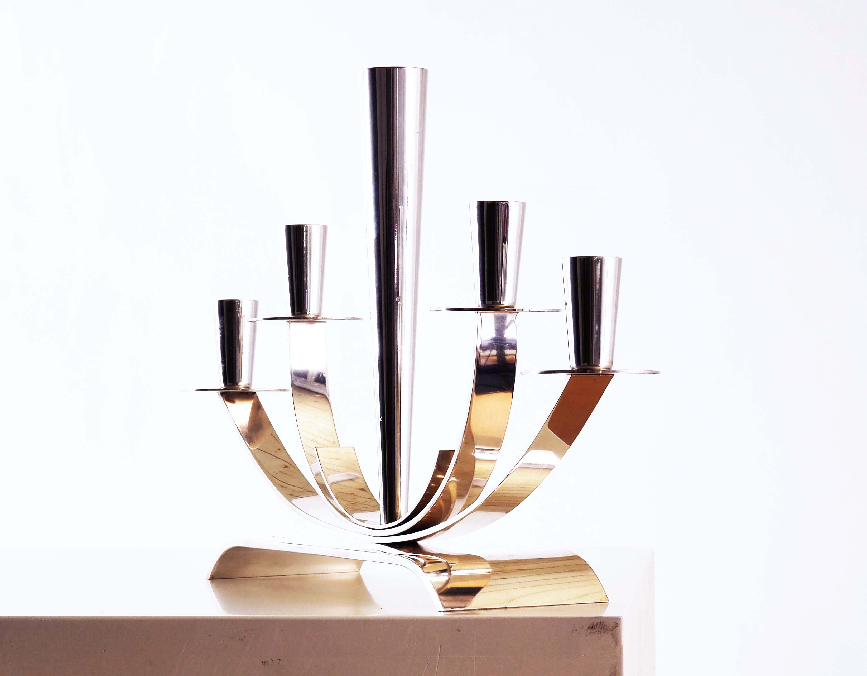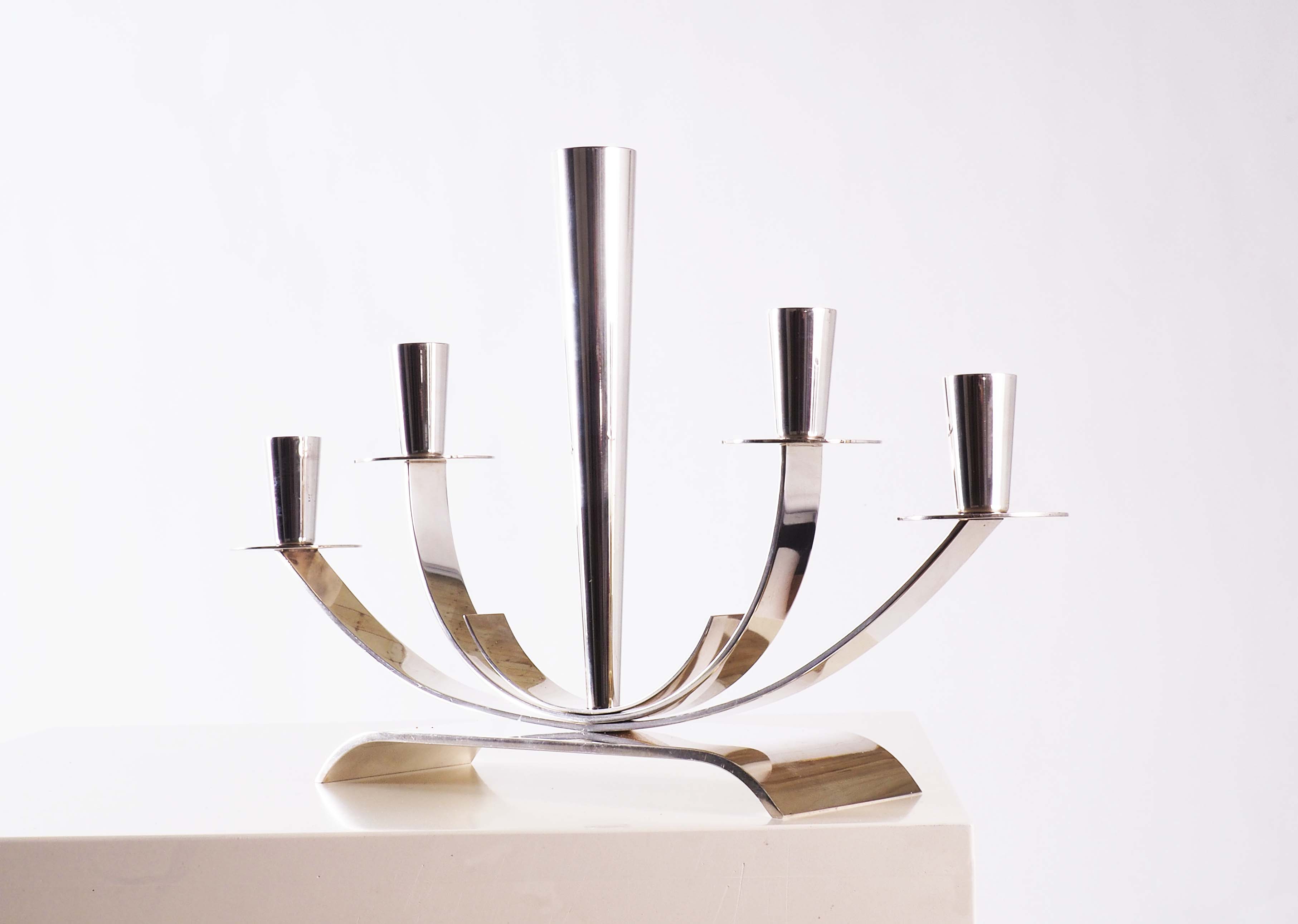 Silver plated candelabra from Ystad Metall, Sweden. This heavy piece is in mint condition.