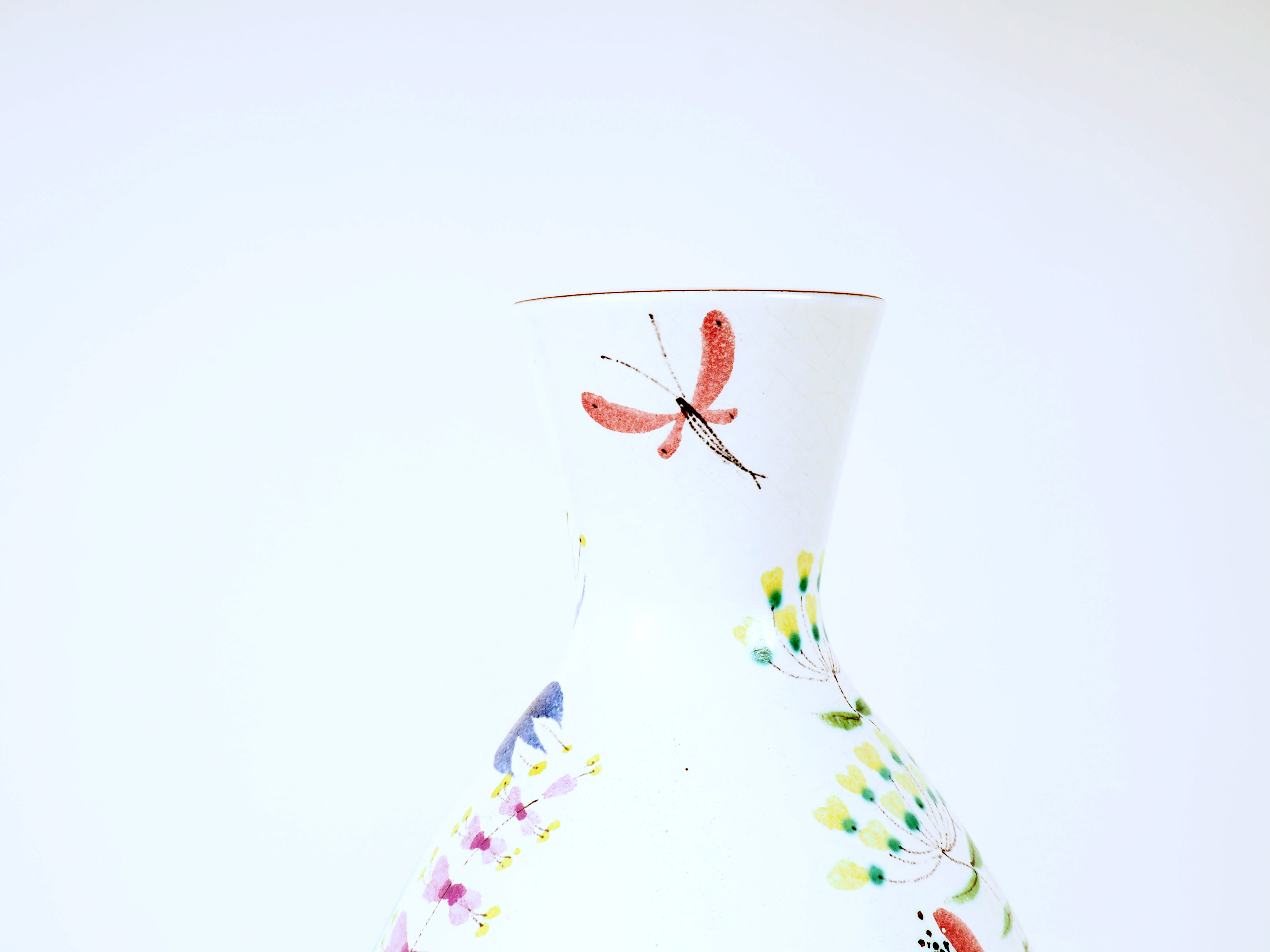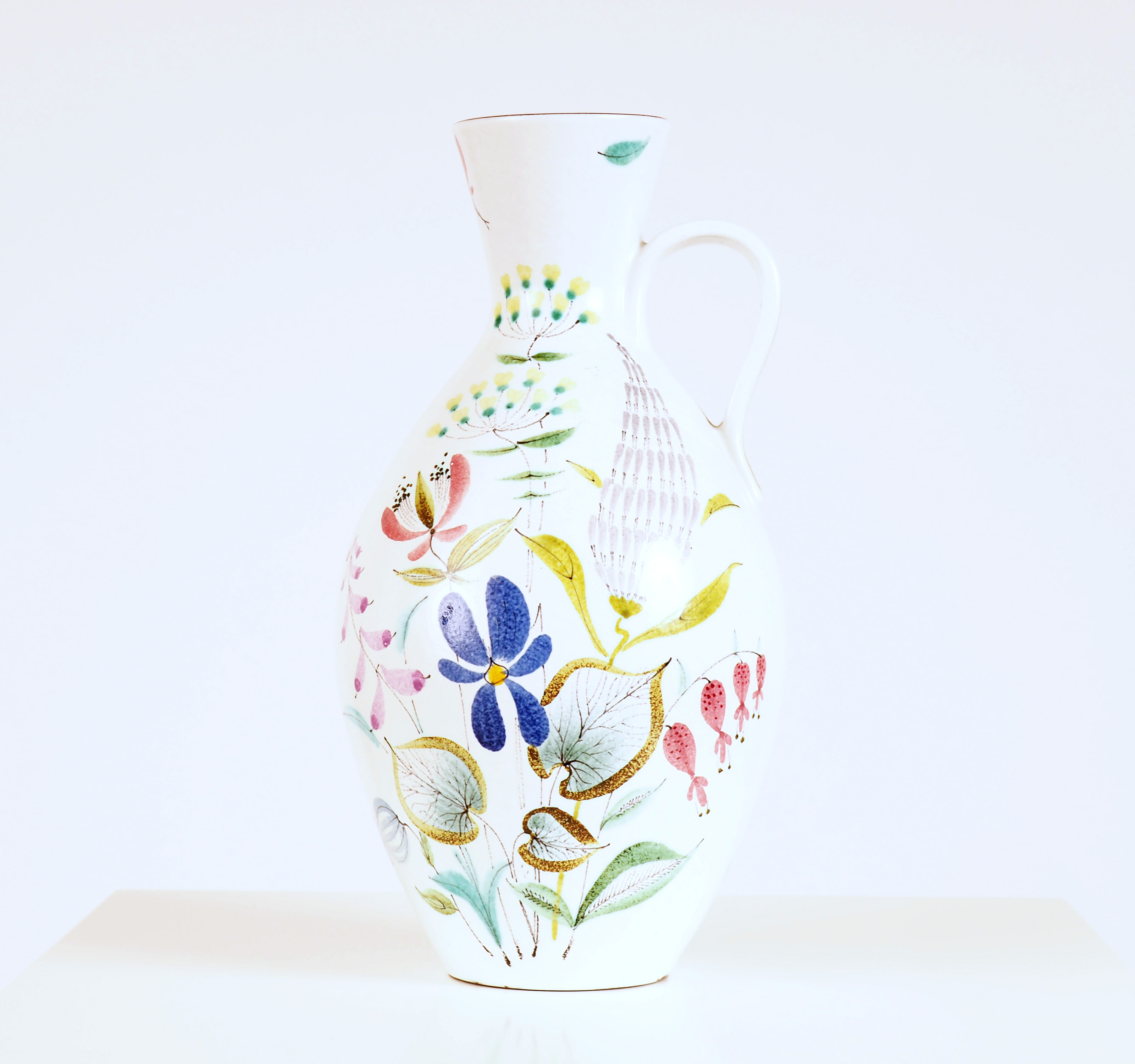 Large vase in hand painted faience by Stig Lindberg for Gustavsberg Studio. Lindbergs began painting faiences in the early 1940s together with Wilhelm Køge.