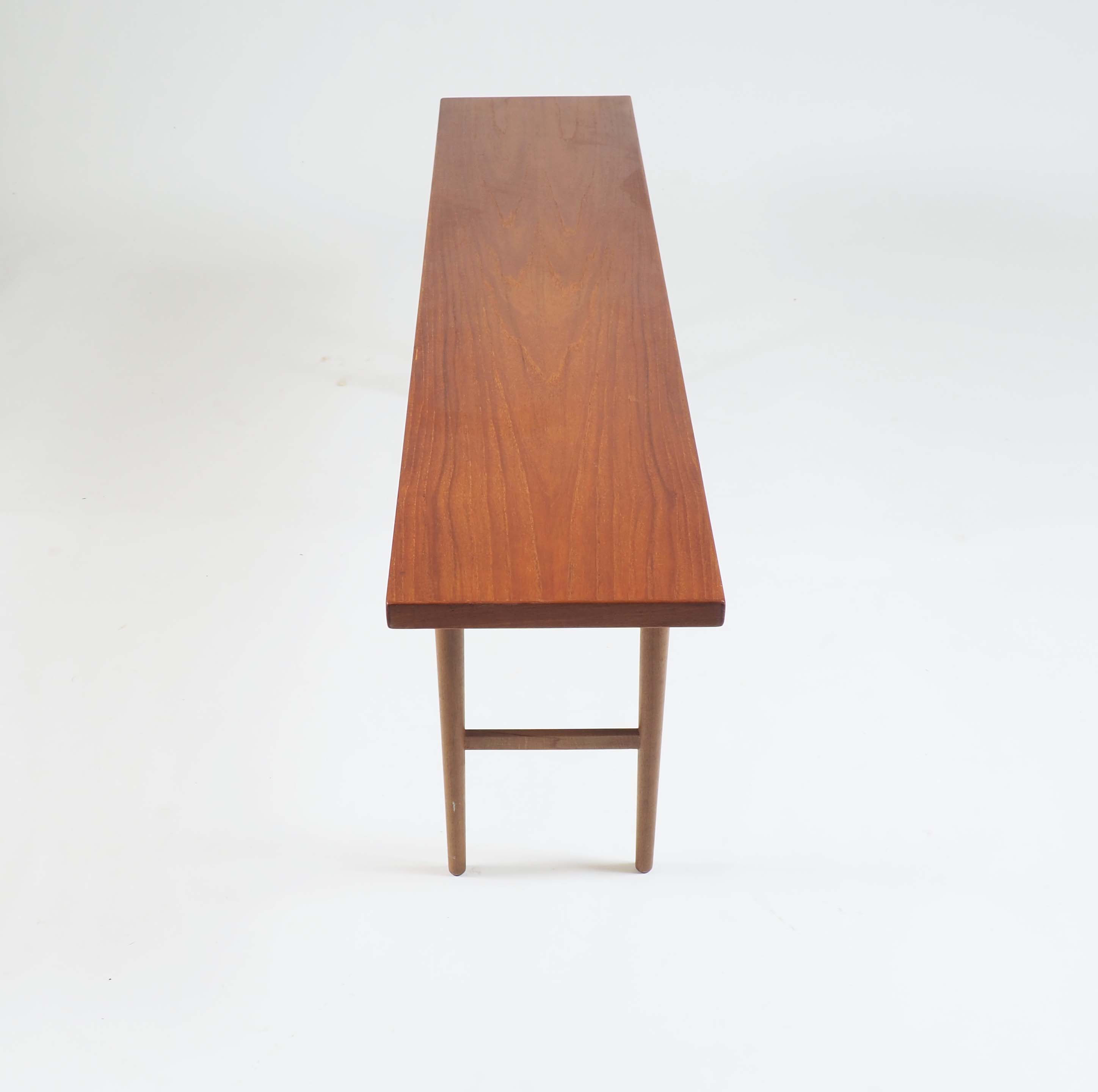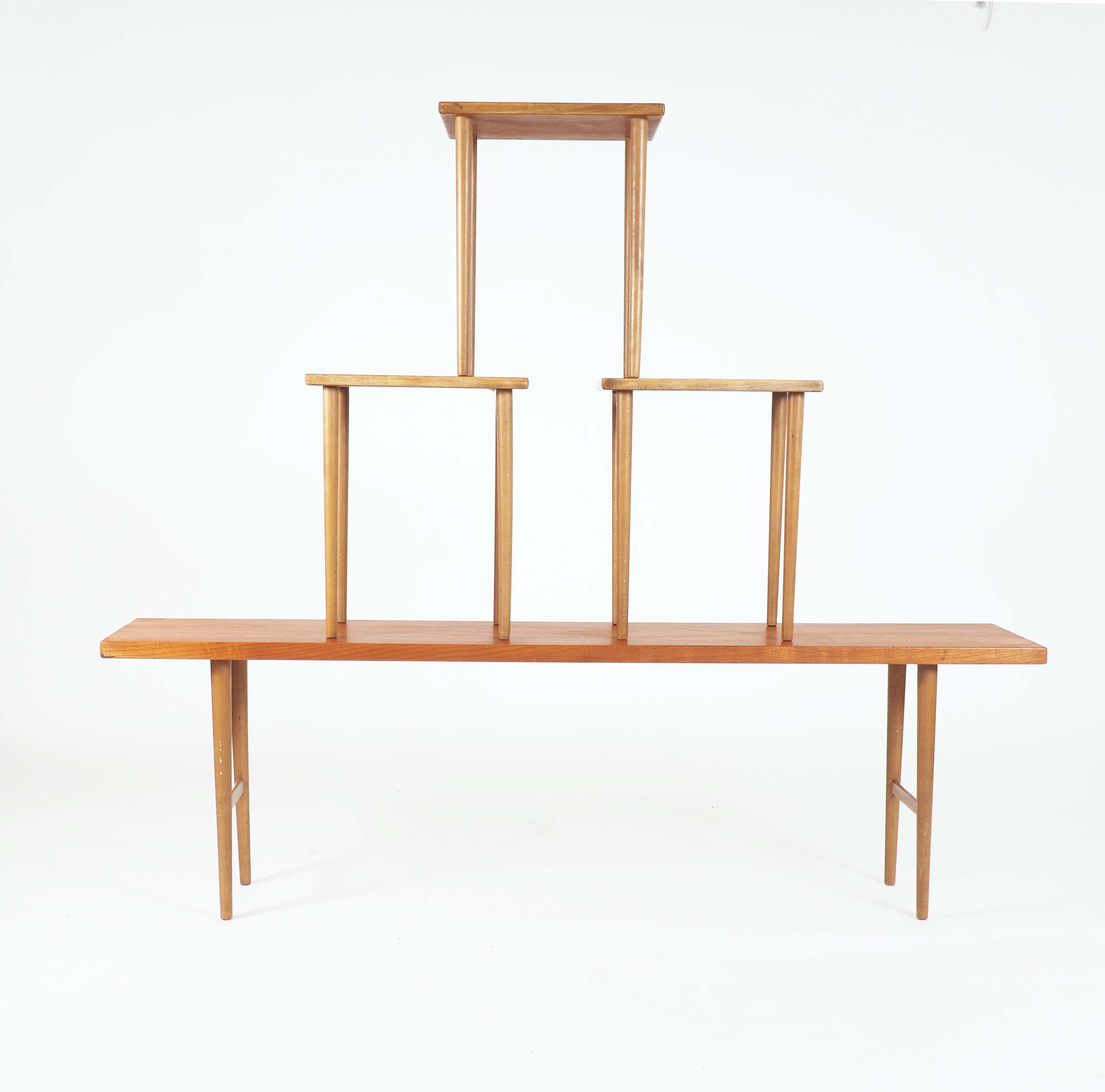 These nesting tables were designed by Kurt Østervig in 1956 and produced by Jason Møbler in Ringsted, Denmark. The model is called model 200 and they are made of teak with legs in beechwood. They can be used in many ways. As a sideboard, as side tables or as a small coffee table.