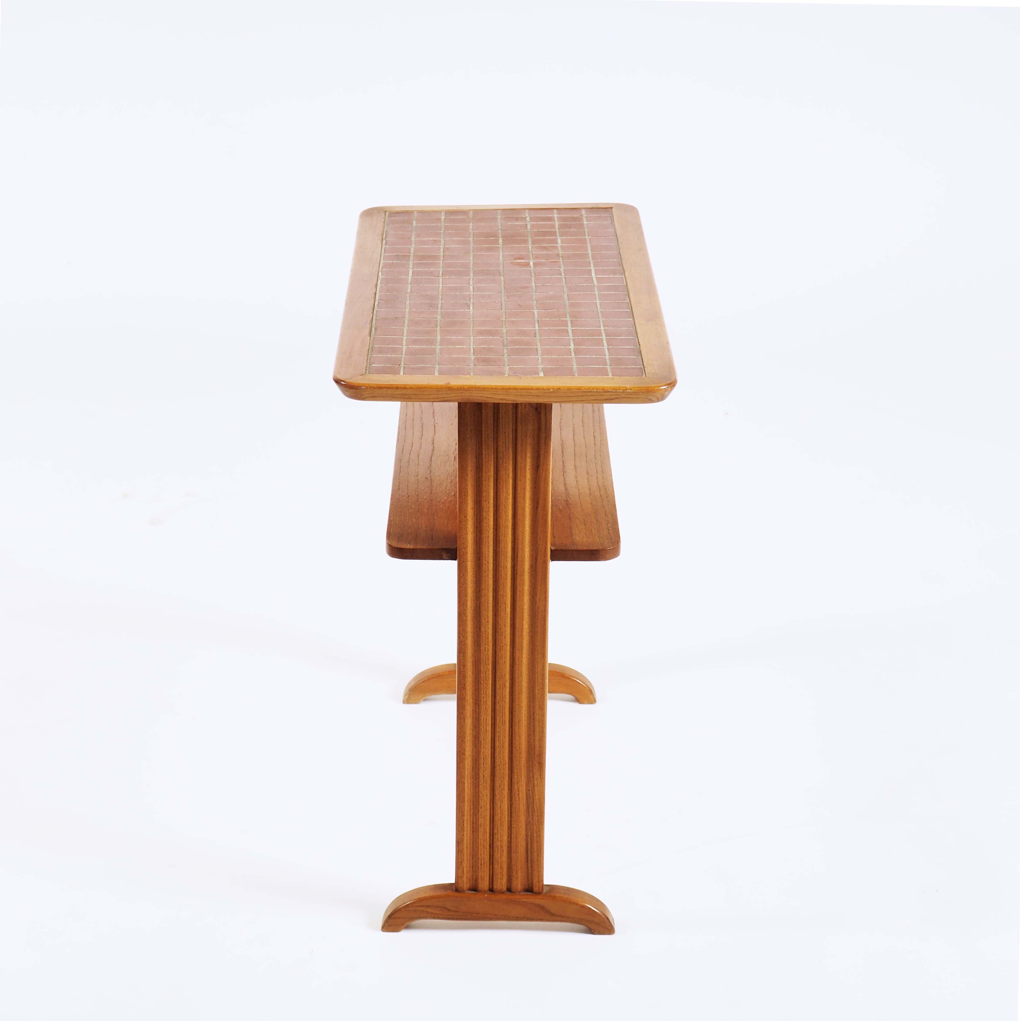 Small table in elmwood and terracotta mosaic (Called "Bosaik" in the advertisement for this furniture). Designed by Otto Schulz, who had his own warehouse and interior magazine in Gothenburg, Sweden, during the 1930s and 1940s.