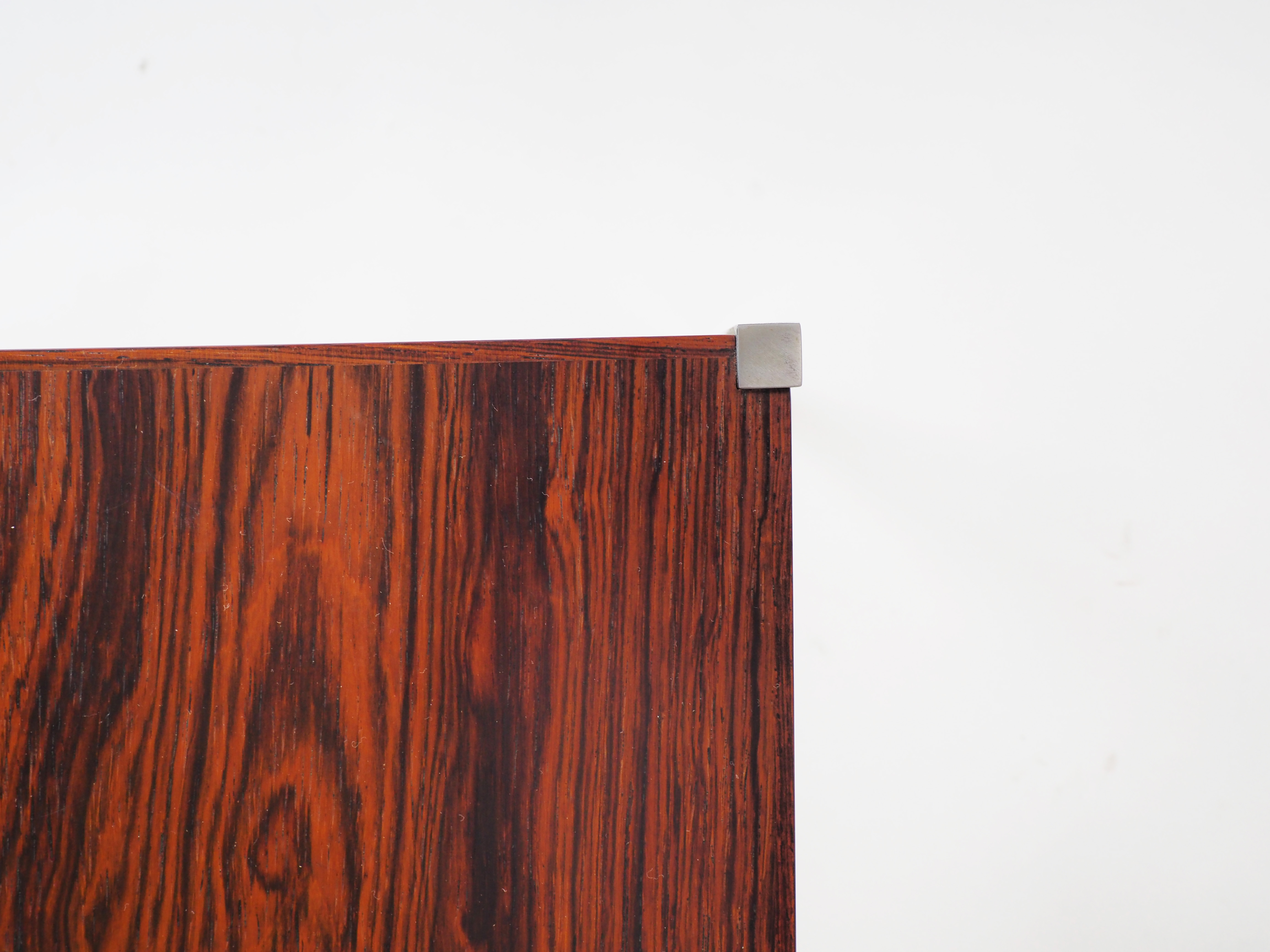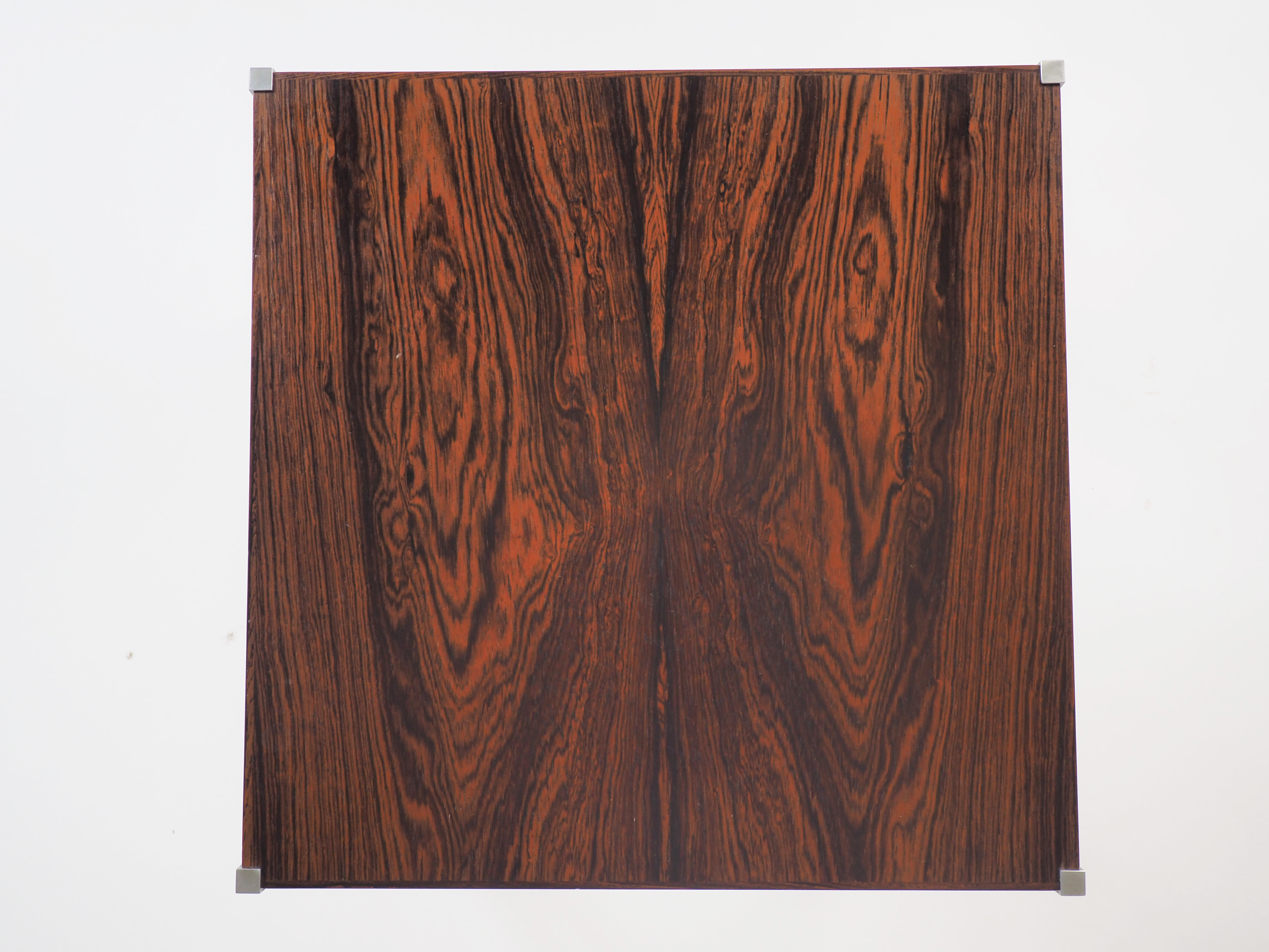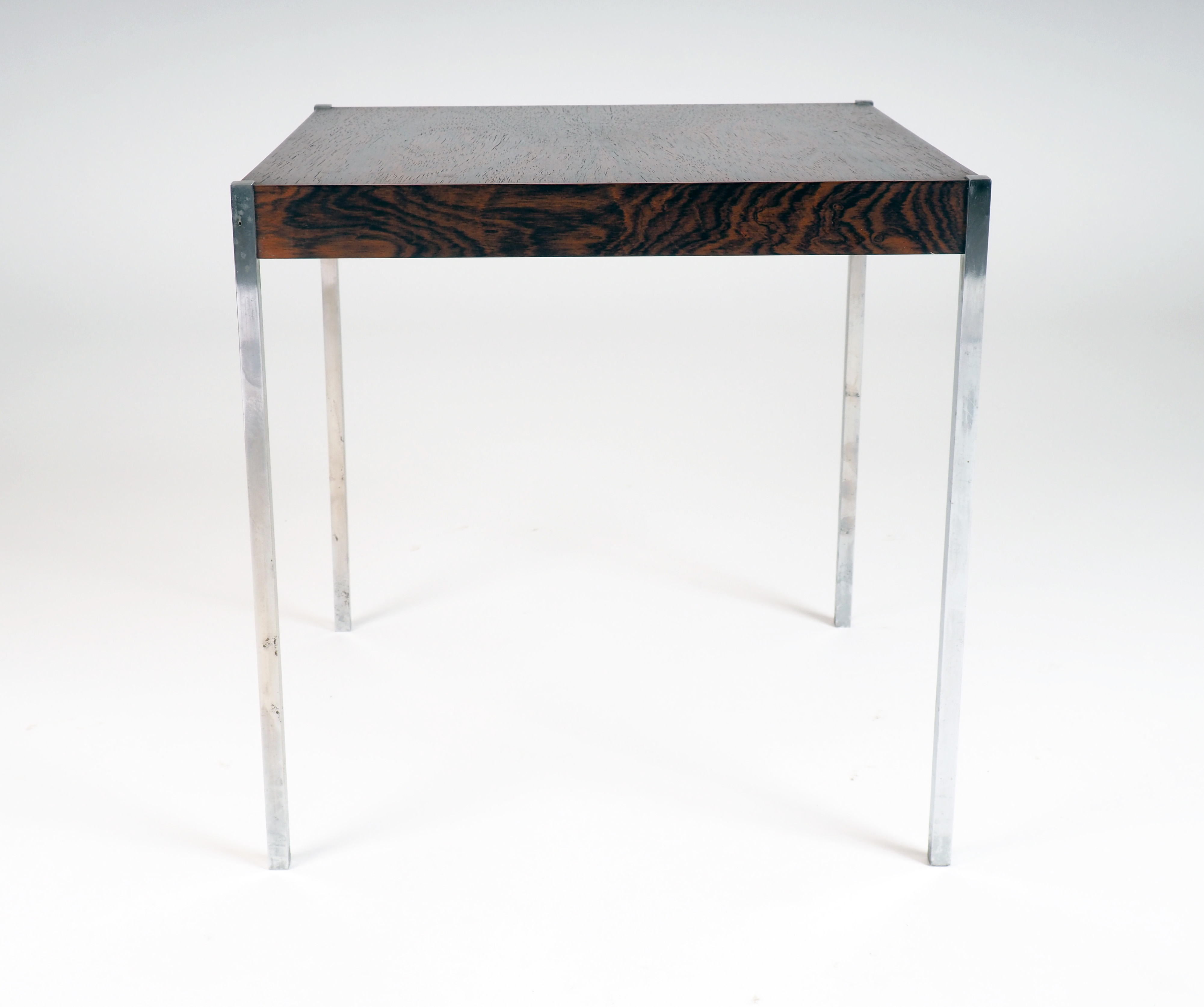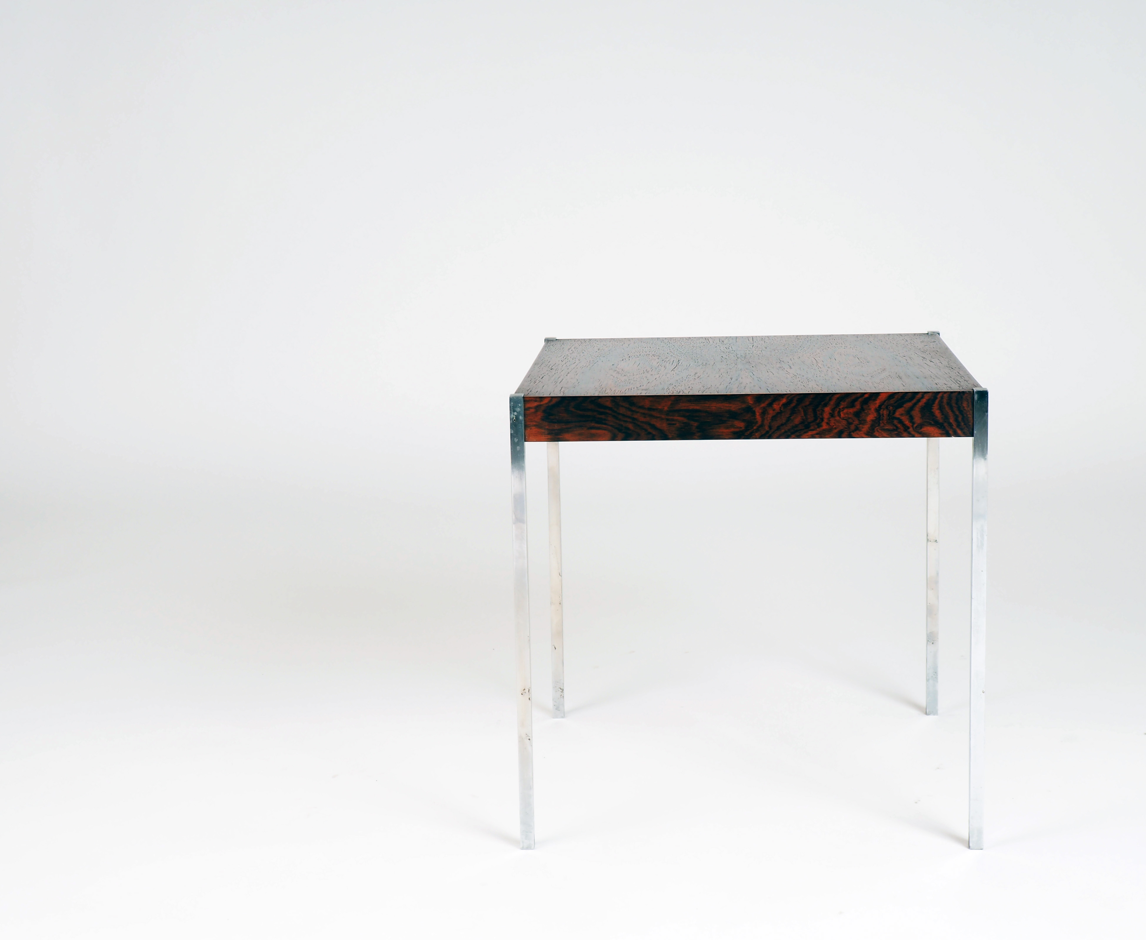 This stylish small table is made in rosewood veneer with legs in stainless steel. It was designed by Östen Kristiansson, one of the owners of Luxus, Sweden.