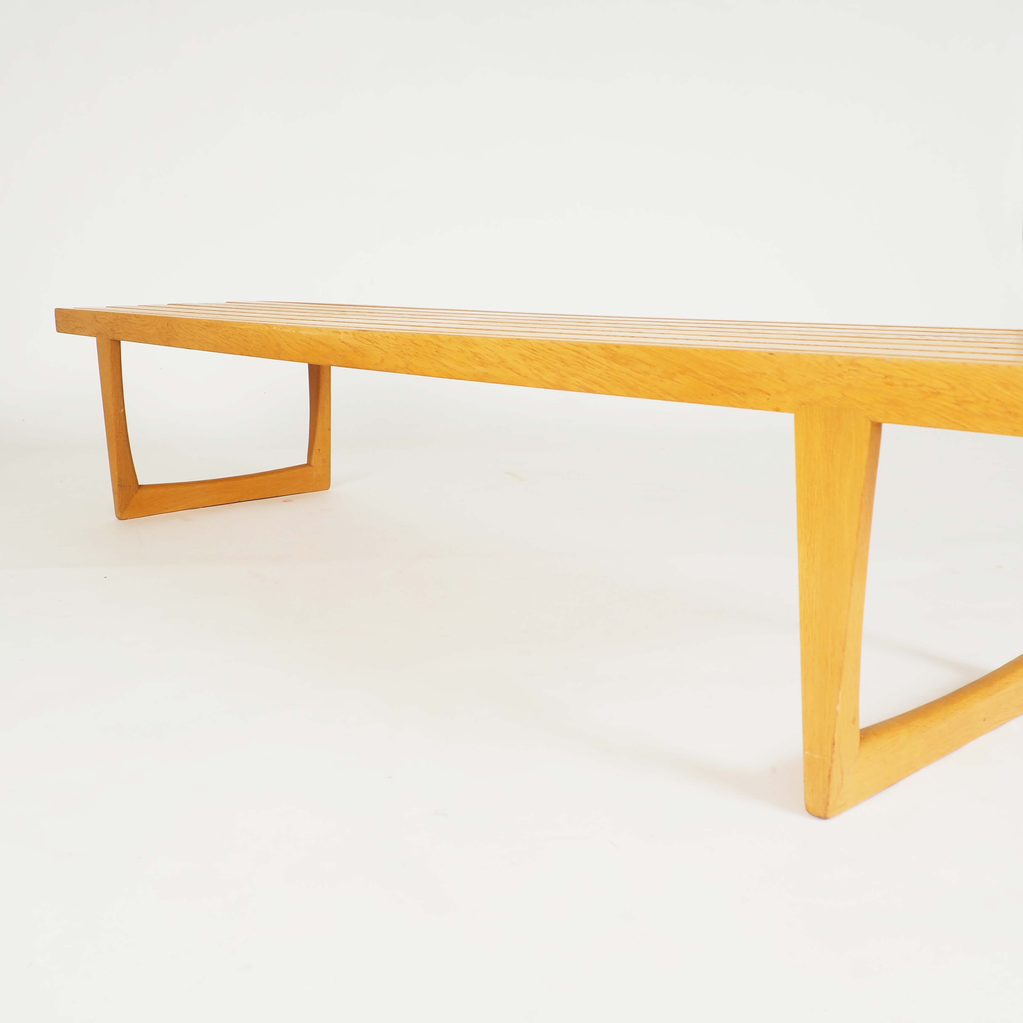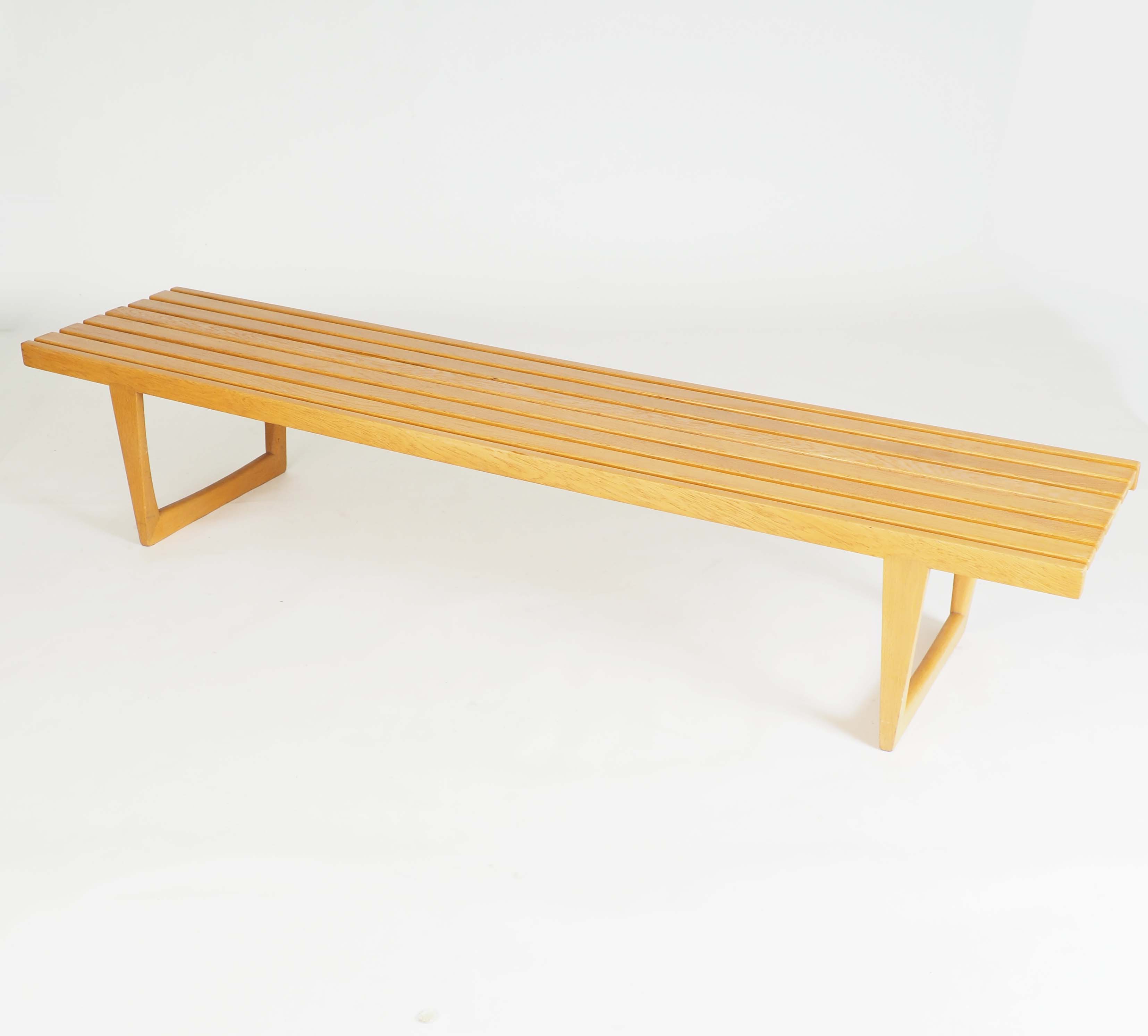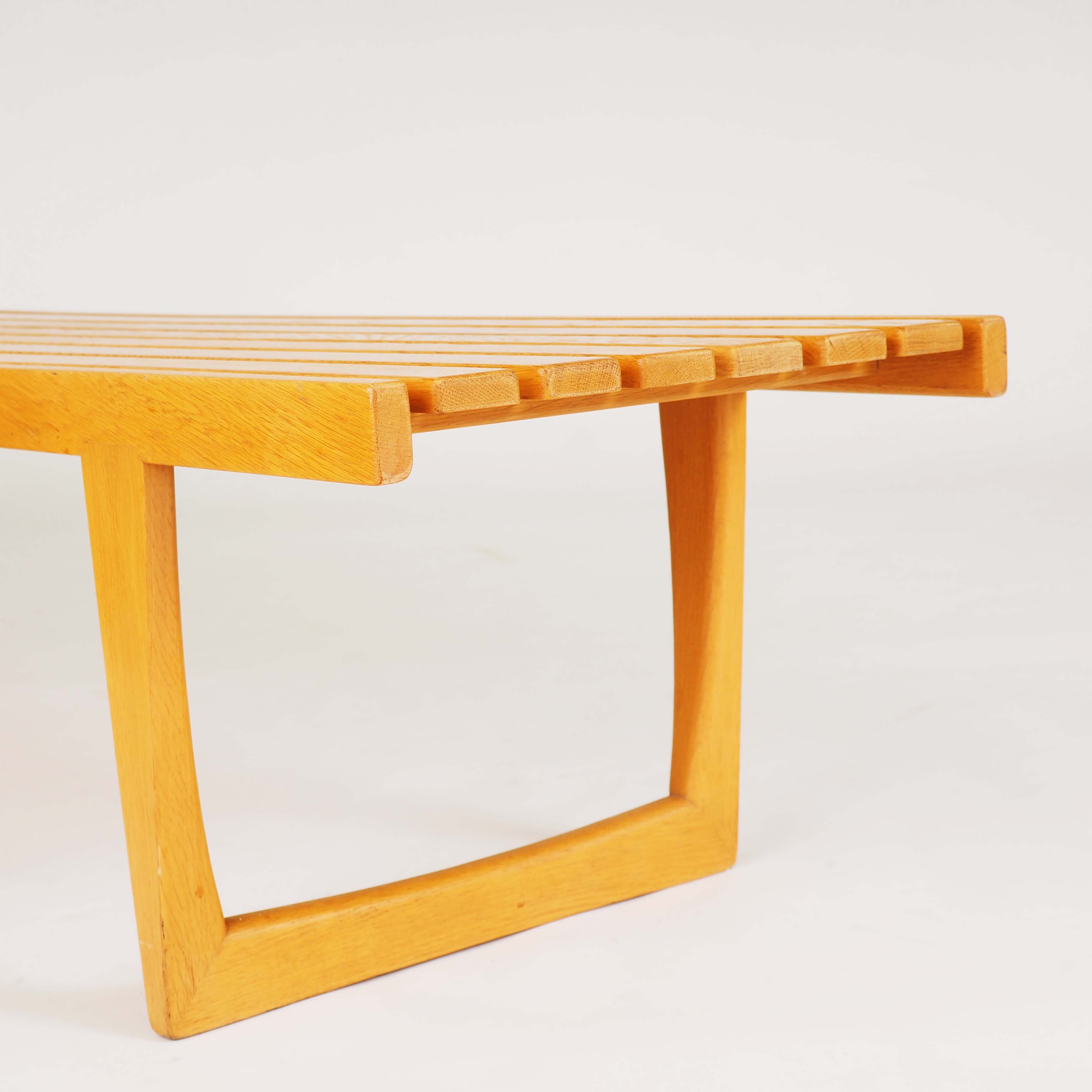 Tokyo, a bench in massive oak for sitting or for using as a table. Made by NK (Nordiska Kompaniet), the leading warehouse in Stockholm. Designed by Yngvar Sandström and part of a series called "Triva" the Swedish word for "thrive".