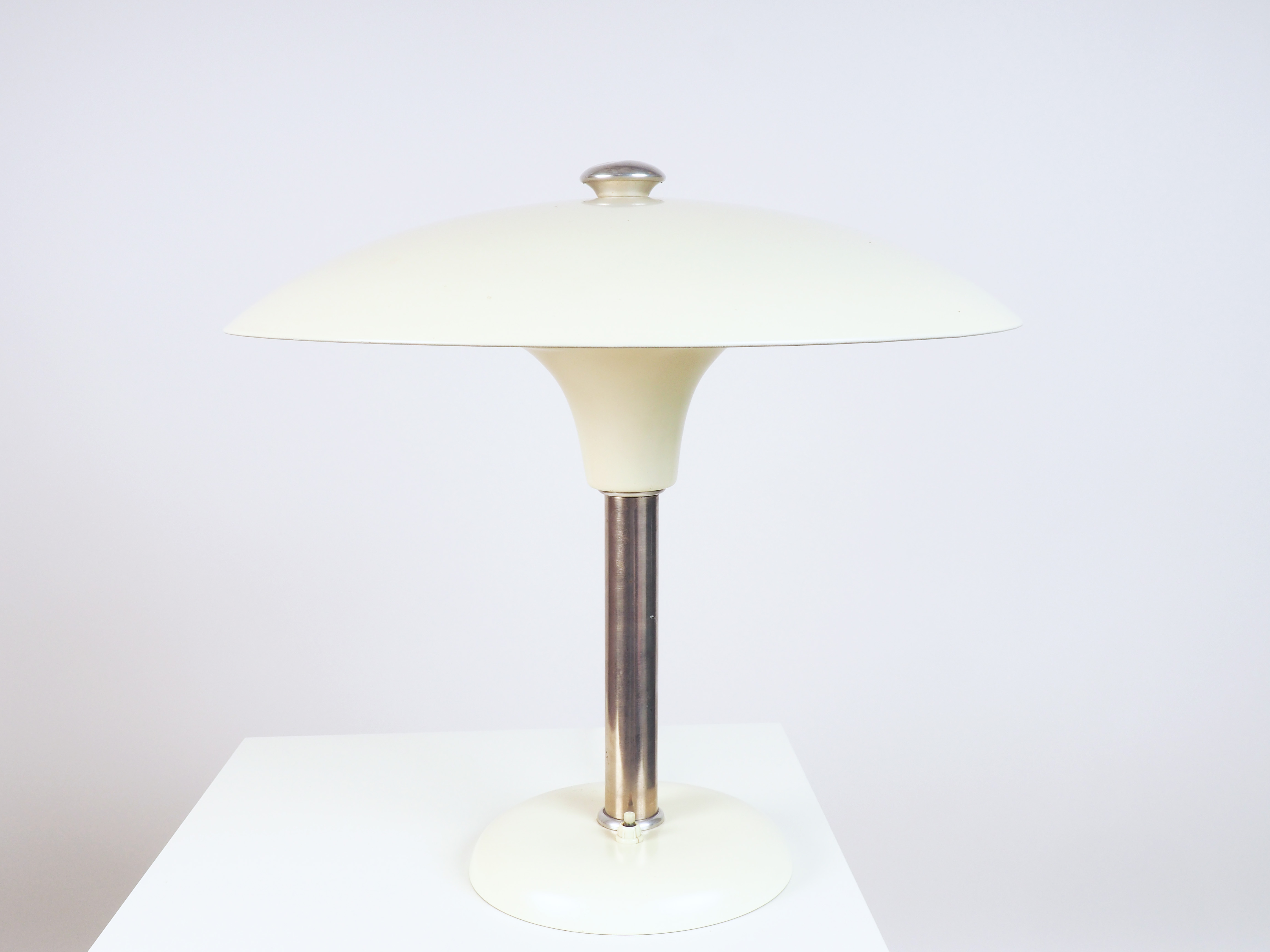 Rare Bauhaus table lamp designed by Max Schumacher and produced by Werner Schroeder, Lobenstein, Germany. Marked underneath MSW.