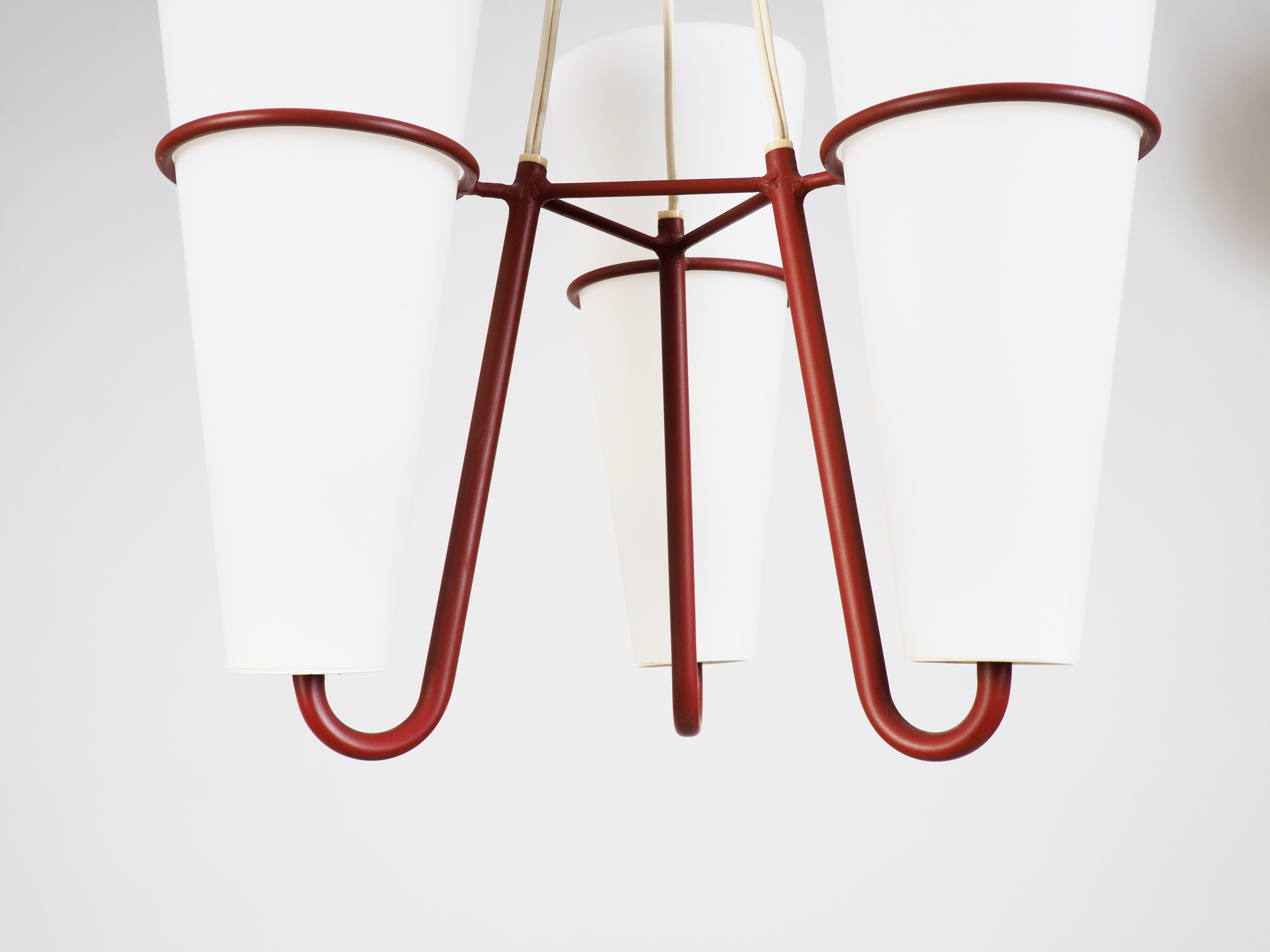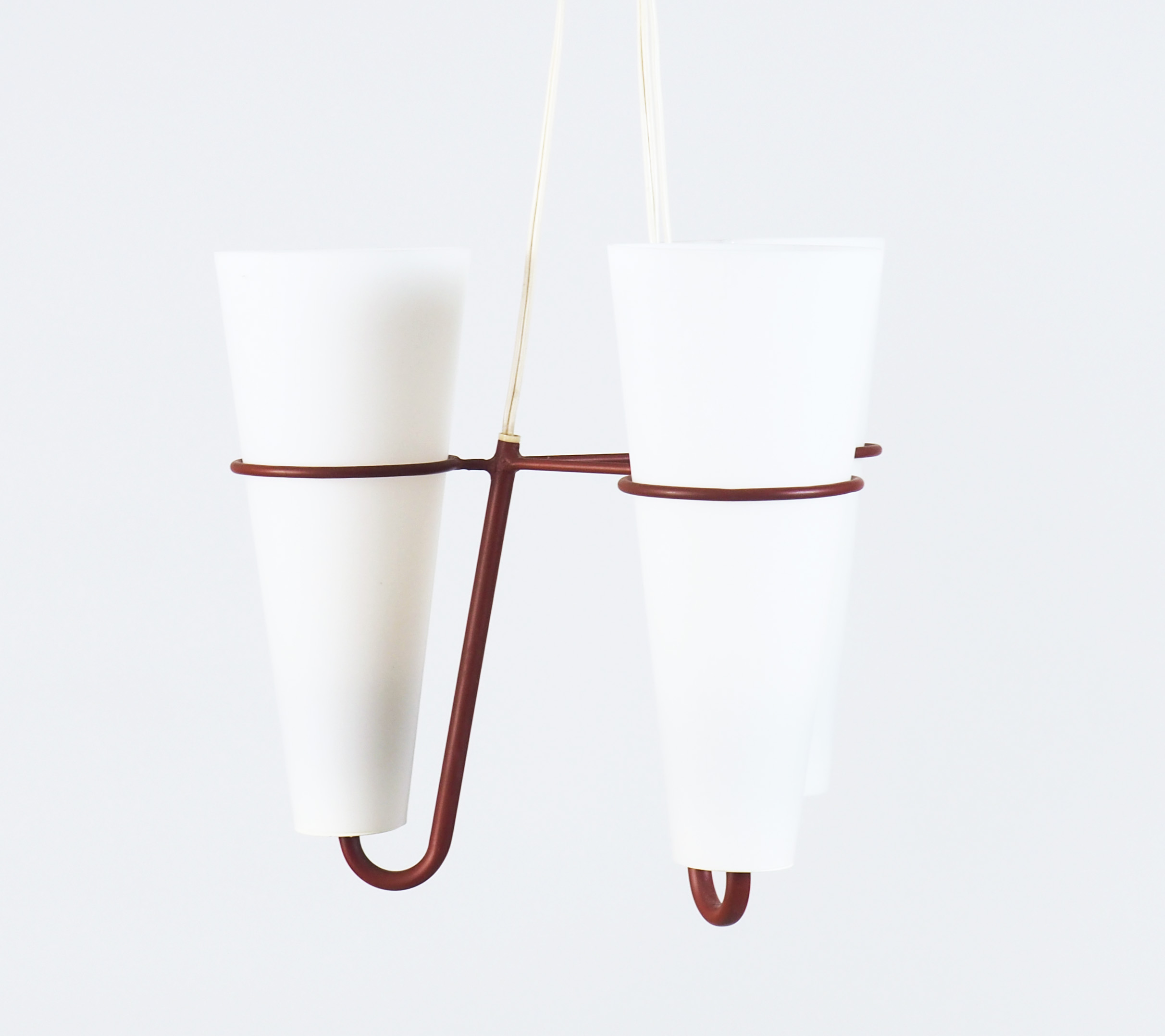 Elegant ceiling lamp from the 1950's. Painted metal and glass.