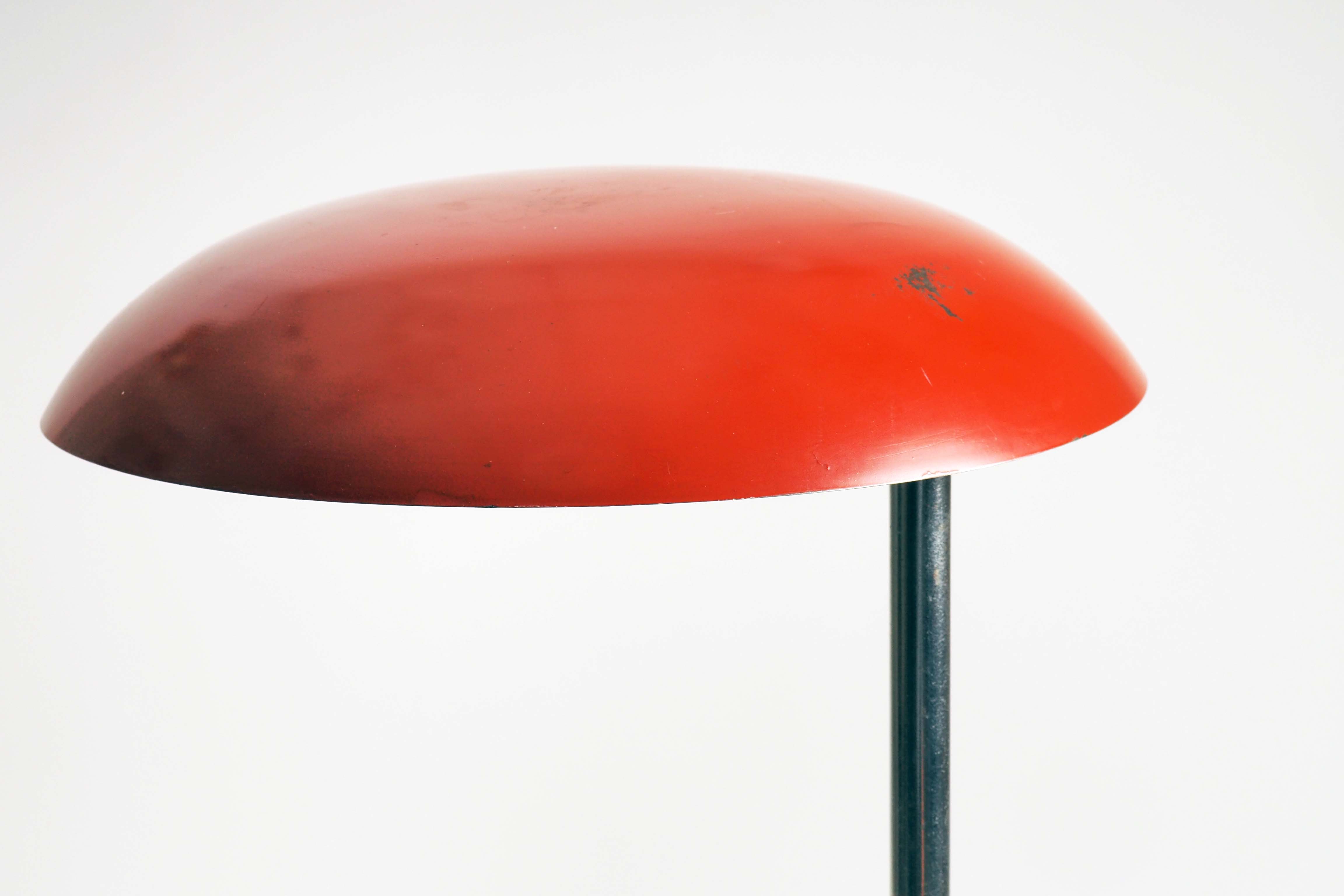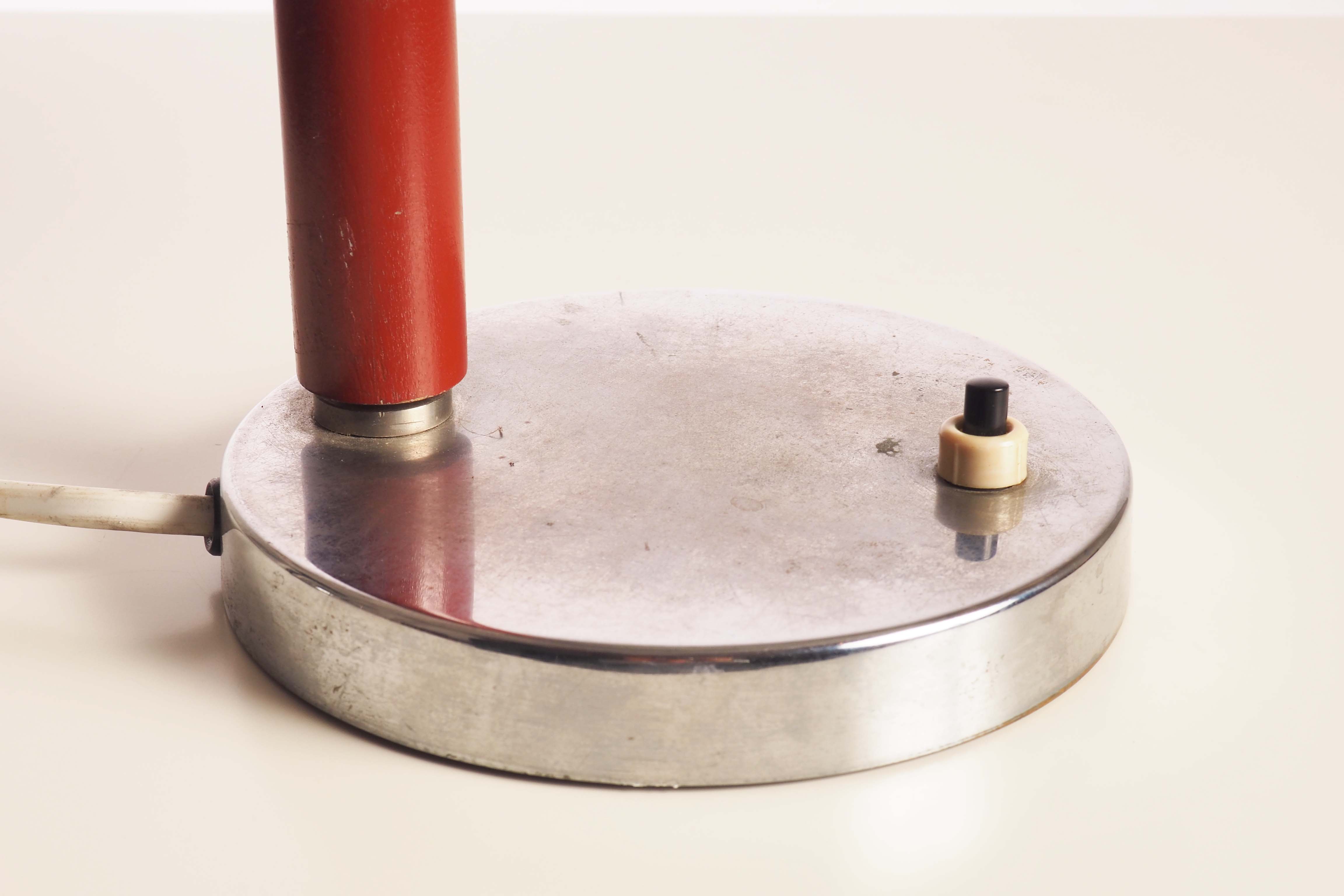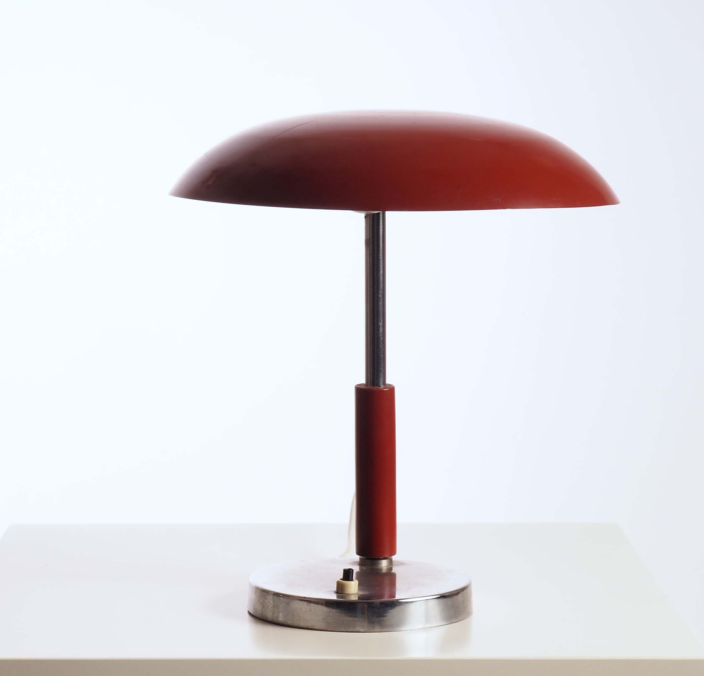 Table lamp in metal and wood. Made in Sweden during the 1930s.